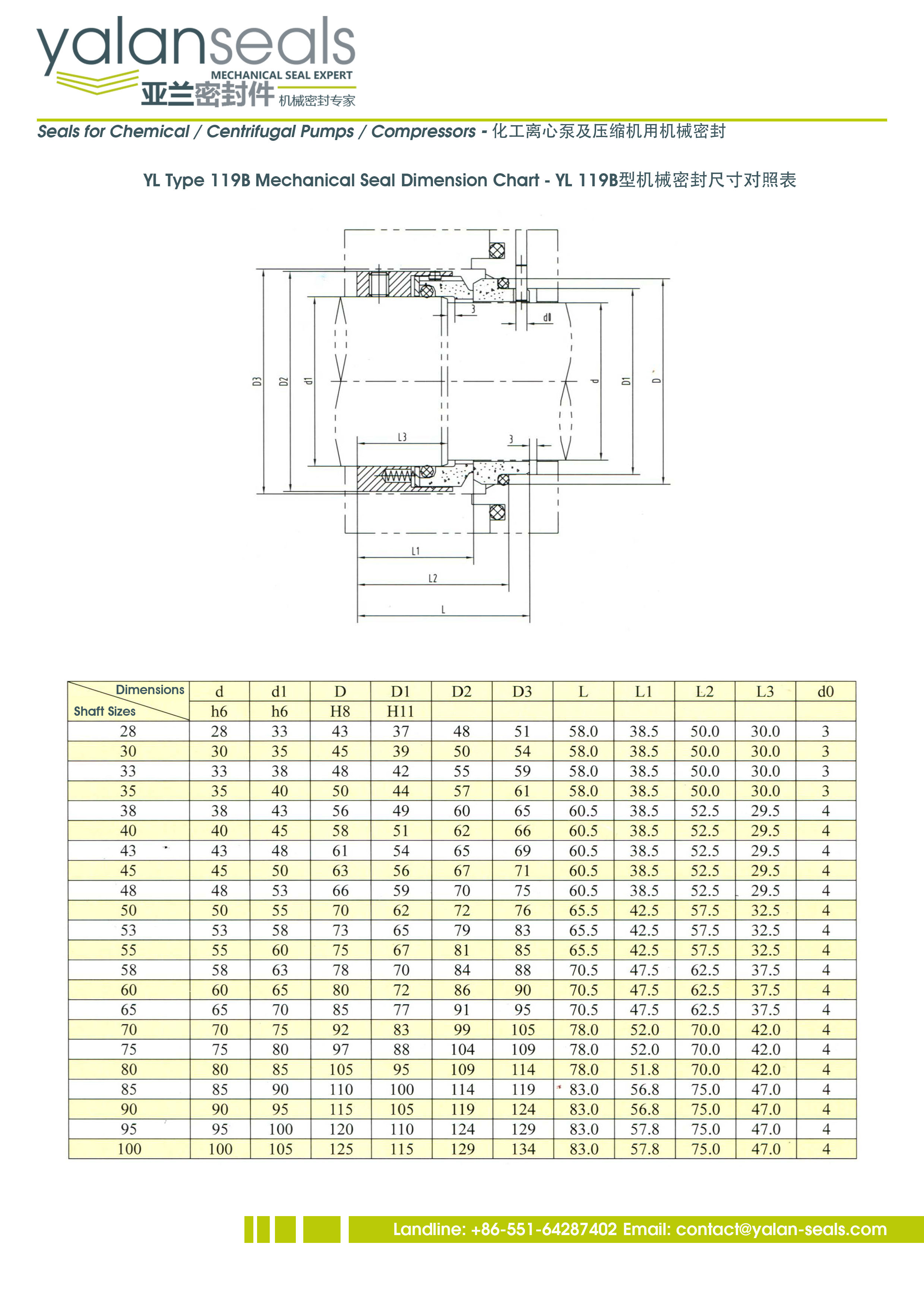 亞蘭119B型多彈簧機械密封件,用于化工離心泵和壓縮機